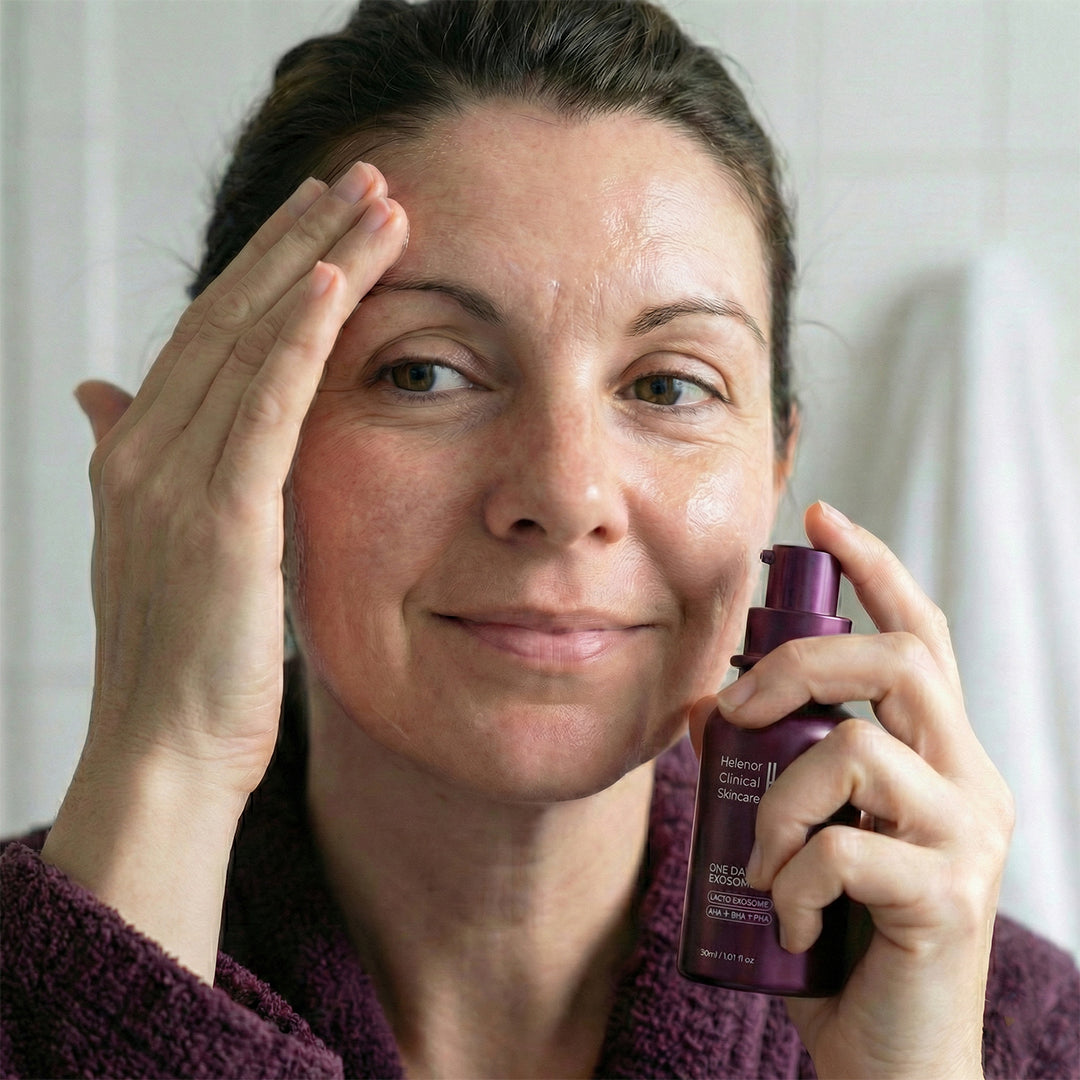 "We developed Helenor ExoPlus to deliver what clinic treatments can't—penetration and precision delivery. Traditional micro-procedures create channels but send nothing into them. Our marine-derived spicules open micro-channels while Lacto Exosomes flood them with peptides, amino acids, and growth factors, accelerating cellular renewal at a rate we hadn't seen with traditional serums. This is the first non-invasive treatment we've formulated that delivers measurable skin regeneration—without downtime or discomfort."