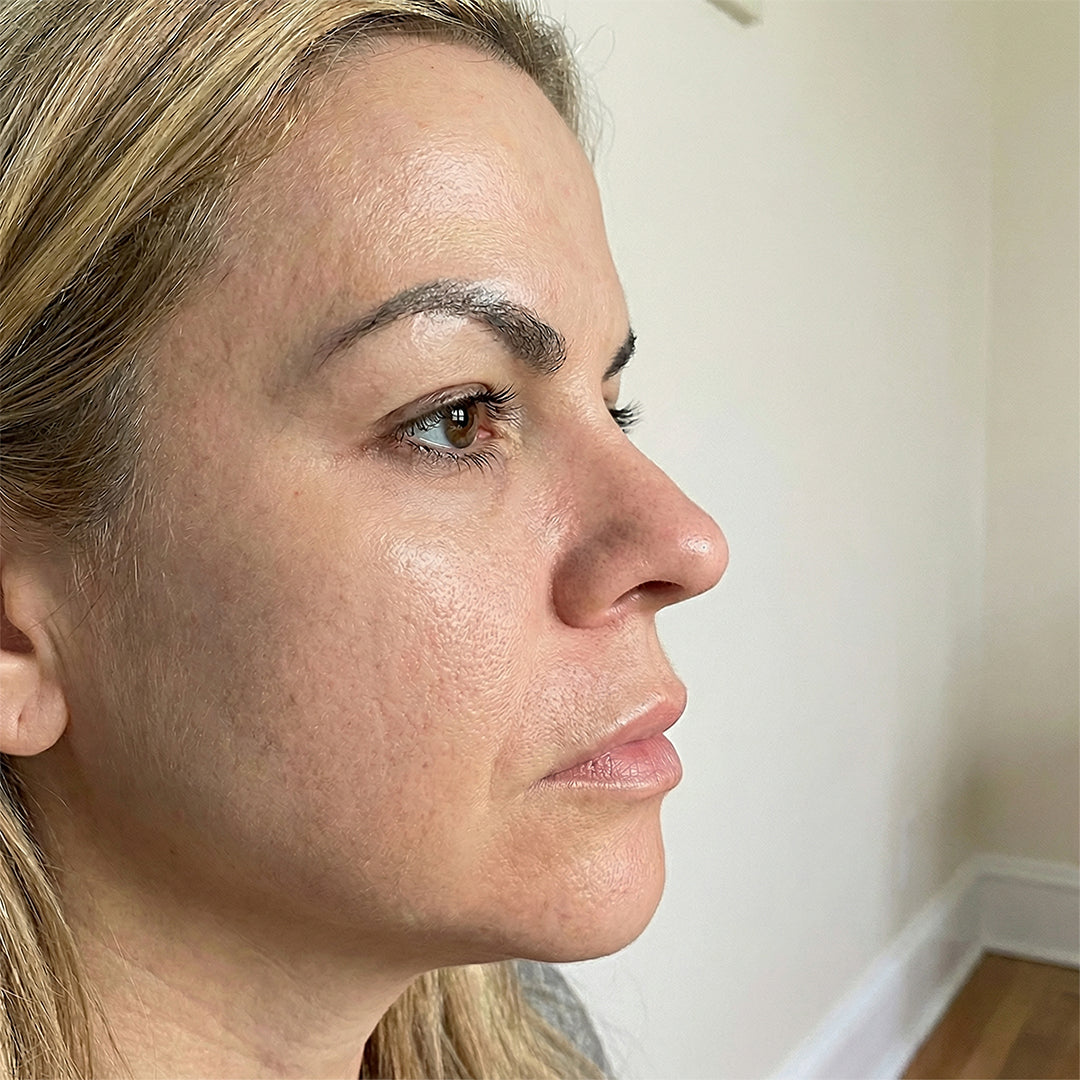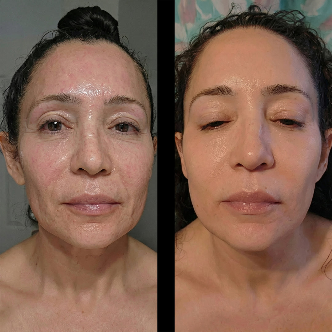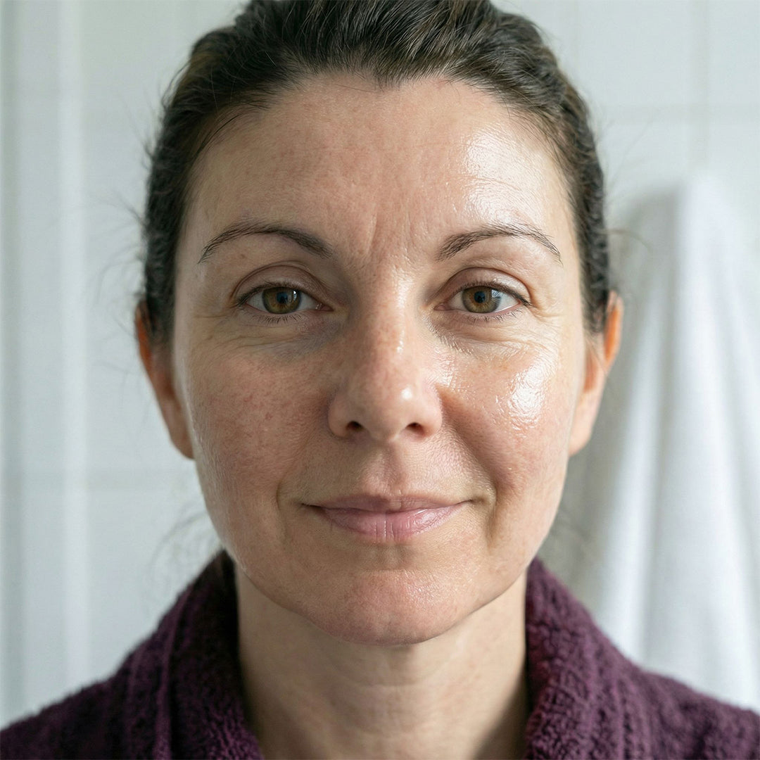 Real change becomes visible. Fine lines begin to soften, skin tone appears more even, and firmness starts to return. New collagen fibers are strengthening the dermal structure—this is regeneration you can see in the mirror.