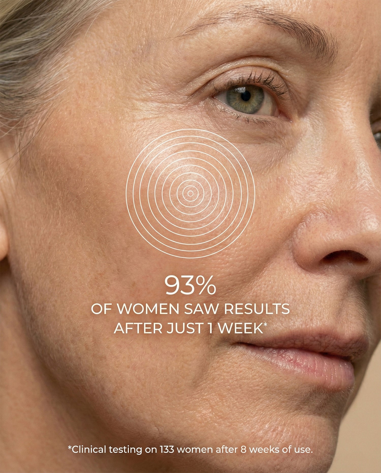 The full picture emerges. Wrinkles appear visibly reduced, elasticity is restored, and skin density feels firmer to the touch. Skin that has been rebuilt from the inside out—revealing a face that looks and behaves younger at a cellular level.