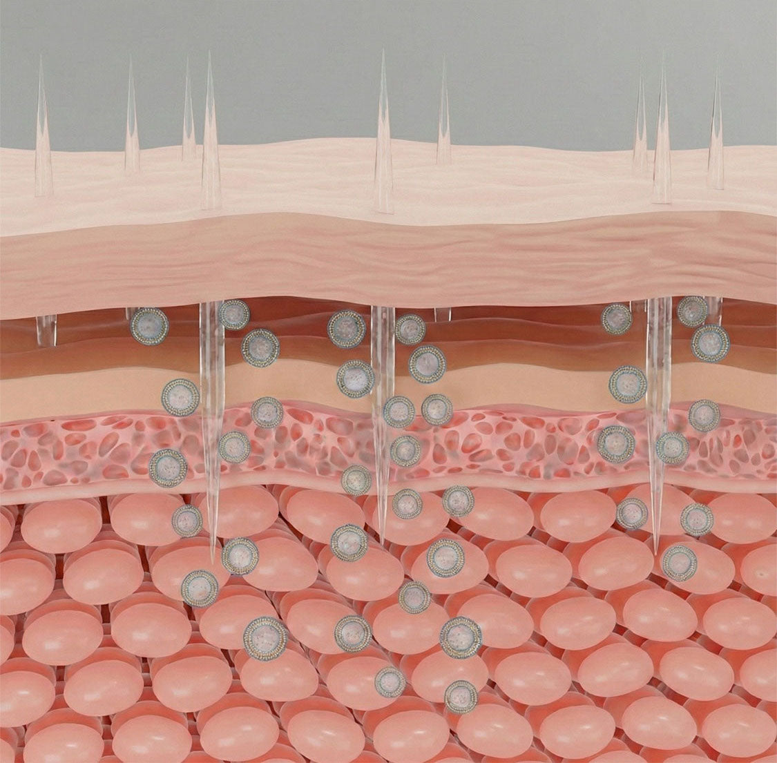 Our proprietary formula uses advanced spicules—hydrolyzed marine sponge—to deliver exosomes directly into the dermis. These natural, marine-based micro-carriers penetrate the skin barrier, transporting bioactive exosomes deep beneath the surface to initiate cellular regeneration from within.